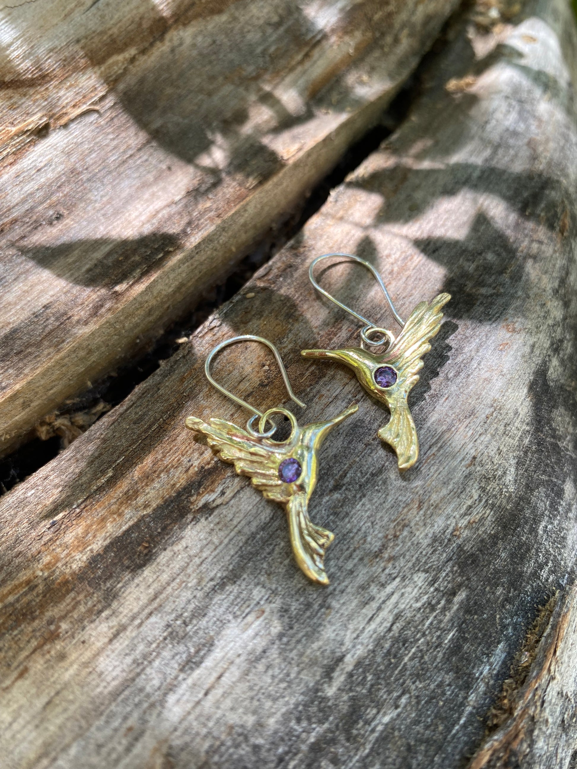 Aros colibrí bronce y piedra